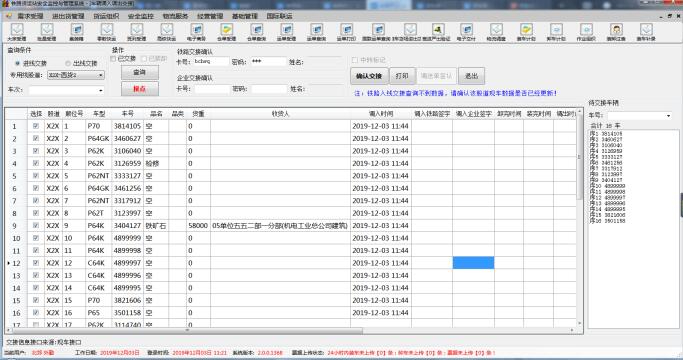 To strengthen the management of dedicated lines and dedicated railway cargo transportation, and further improve the management level of dedicated lines and the quality of freight services. The special line handover system developed by our company automatically identifies the vehicle number of vehicles entering and leaving the special line, saves the vehicle image data, and transmits the machine inspection information into the freight station system, which provides the basis for the handover of road enterprises and generates truck transfer orders, avoiding the opinions and disagreements between road enterprises and trucks on the delayed occupation fee. The electronic ledger of the dedicated line can be queried, while wireless handhelds are used for data tracking and timely processing of vehicles in and out.